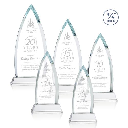 Celebrate success and commemorate outstanding achievements with the Valdes on Helton Starfire Peaks Crystal Trophy. This exquisite award is crafted from premium crystal, standing with an arrowhead silhouette that elevates its aura of excellence. The trophy is ¾ inch thick, featuring deep, dramatic bevels that catch the light, creating a striking display. Resting on a robust crystal base, it offers space for personalized engraving to honor the recipient with elegance. Whether for anniversaries, milestones, or special recognitions, this crystal trophy translates appreciation into a tangible symbol of high regard and is an ideal addition to any accolade collection. Optional second position etch available to further customize this timeless piece.