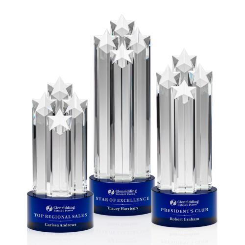 Honor stellar achievements with the McNeil Star Blue Towers Crystal Trophy, a beacon of success that embodies excellence. This exquisite trophy, crafted from premium optical crystal, stands tall with its sleek tower design crowned by a quartet of radiant stars. Each star is precision-cut to catch and reflect light, symbolizing the shining accomplishments of its recipients. The trophy is anchored by a deep sapphire blue crystal base, which offers a striking contrast and adds a layer of sophistication. This base also provides ample space for personalized engravings to commemorate special milestones or accolades. Ideal for corporate awards, recognition events, or as an elegant gift, this trophy will not only mark achievements but also serve as a lasting symbol of dedication and brilliance.