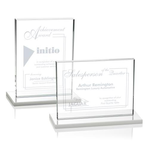 Celebrate exceptional accomplishments with the Roach Fagan Rectangle Crystal Trophy, a synthesis of elegance and simplicity. This 1/2" thick award, carved from premium Starfire Crystal, boasts a pristine, rectangular silhouette that can be mounted vertically or horizontally upon a graceful ivory crystal base. Its generous surface area is perfect for personalized engravings, making it an ideal canvas to honor significant achievements. Whether for corporate recognition or a personal milestone, this crystal trophy is versatile and can be partnered with various bases to suit your desired aesthetic. Each piece begins as a blank slate, waiting to be transformed into a unique symbol of excellence and appreciation.