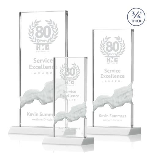 Elevate the celebration of excellence with the Rubin Fagan Rectangle Crystal Trophy. This exquisite piece is crafted from premium Starfire Crystal, boasting a generous 0.75" thickness that gives it a prominent presence. The award's vertical orientation is accentuated by a unique, deep-carved cascading waterfall design, which adds an elegant and contemporary twist that will delight any recipient. Its solid white, polished front mitered base ensures stability and enhances the trophy with a refined touch. Ideal for custom personalization, this crystal trophy offers an optional 2nd position etch to commemorate achievements or milestones with sophistication. Whether for corporate recognition, service awards, or personal milestones, the Rubin Fagan Rectangle Crystal Trophy stands as a timeless testament to exceptional achievement.