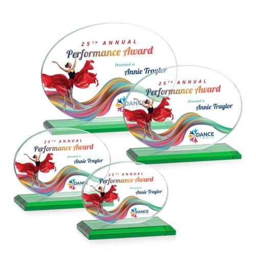 Honor excellence and commemorate outstanding achievements with the Woods (Horiz) Full Color Green Circle Crystal Trophy. Crafted from premium Starfire crystal, this sophisticated award features a sleek, circular design mounted on an elegant, beveled base available in a selection of 8 vibrant colors. The half-inch thick crystal provides a perfect canvas for personalization, allowing ample space for etching heartfelt dedications, names, and accolades. The trophy is presented in both horizontal and vertical formats to suit various display preferences. Whether for corporate recognition or celebrating personal milestones, this exquisite crystal trophy is designed to leave a lasting impression.