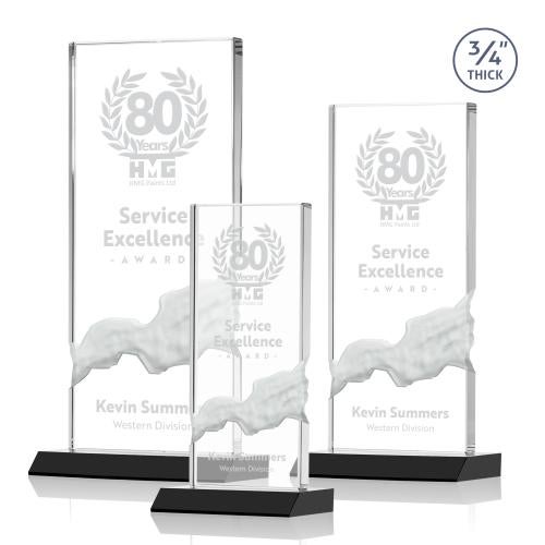 Celebrate achievements and milestones with the distinguished elegance of the Rubin Black Rectangle Crystal Trophy. Crafted from premium Starfire Crystal, this award boasts a sleek, vertical rectangle design that stands .75ââ¬Â thick. Each trophy features a deep carved cascading waterfall effect, which adds a dynamic and contemporary twist to the classic recognition piece. Resting on a sophisticated, ebony polished mitered base, the trophy offers a robust foundation, embodying both stability and style. The clear, pristine surface is perfect for customized etchings that honor the exceptional performances and contributions of recipients. Whether for corporate accolades, team accomplishments, or individual excellence, this crystal trophy is designed to make a memorable impression. Please note that customization and additional etching options are available to make each award truly unique.
