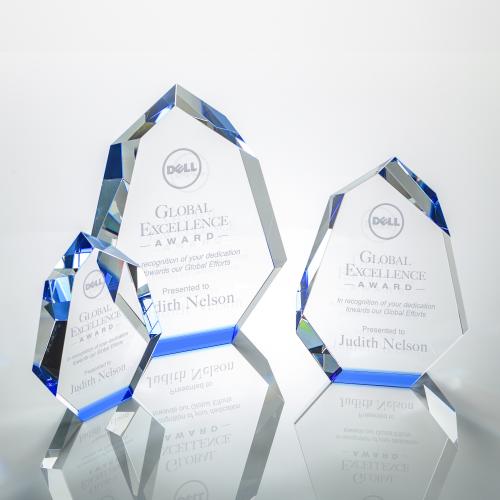 Celebrate excellence and recognize achievement with the Thomson Blue Polygon Crystal Trophy, a testament to triumph and dedication. Crafted from the finest crystal, this stunning award showcases a series of multifaceted beveled edges that catch and refract the light, producing a captivating spectrum of sapphire reflections. Its bold polygonal design stands freely and proudly, commanding attention as a distinguished piece of recognition art. Whether for corporate accolades, academic honors, or personal milestones, this trophy is an ideal canvas for your personalized engravings, ensuring that the recipient's accomplishments are immortalized in elegance. Please note, all trophies are provided blank, allowing for customized personalization to meet your unique gifting needs.