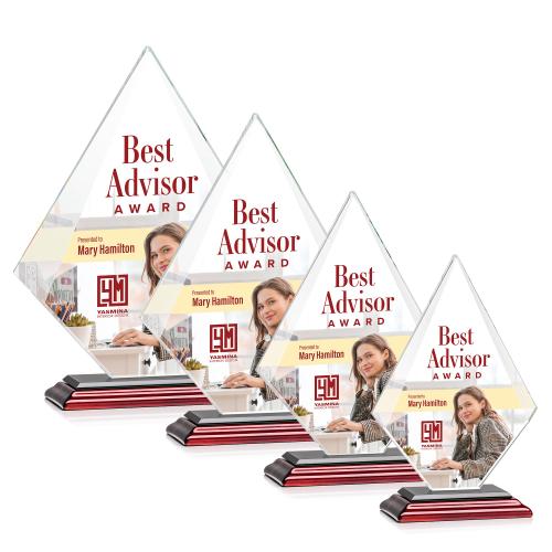 Celebrate outstanding accomplishments with the Lujan Full Color Wood Diamond Crystal Trophy, a symbol of achievement that blends modern design with timeless sophistication. Crafted from premium Starfire Crystal, this award features tapered beveled edges that capture the light, showcasing a vivid full-color imprint that truly honors the recipient's excellence. The diamond-shaped crystal, with its clean and crisp lines, is gracefully mounted on a sleek wood base with a choice of eight distinctive color accents, allowing personalization that complements company branding or event themes. Each trophy is thoughtfully packaged in a black satin-lined gift box, ensuring it arrives as a luxurious token of recognition. Perfect for honoring milestones, employee appreciation, or any notable success, this trophy promises to be a centerpiece that winners will display with pride.