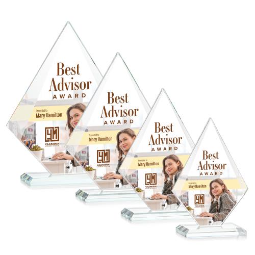 Discover the epitome of crystal elegance with the Lujan Full Color Clear Diamond Crystal Trophy, a stunning symbol of recognition designed to celebrate exceptional achievements. Expertly crafted from premium crystal, this award features a classic diamond shape with tapered beveled edges that catch the light, creating a captivating display of brilliance. Mounted on a tastefully beveled base with the option to select from eight vibrant colored accents, this trophy is a versatile choice for any industry. The award begins as a blank canvas, inviting you to personalize it with full-color VividPrint to honor individual or team accomplishments. Each trophy is thoughtfully packaged in a sleek black satin-lined gift box, making it an unforgettable token of appreciation. Elevate your recognition game and leave a lasting impression with this budget-friendly yet luxurious award.