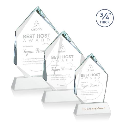 Celebrate exceptional achievements with the Boone on Helton Fagan Peaks Crystal Trophy. This exquisite piece is crafted from 3/4" thick Starfire Crystal, ensuring a luxurious feel and a high-impact visual appeal. The award's design features a series of deep, intricate bevels that create a dynamic interplay of light and shadow, highlighting the accomplishments of the recipient. Available with a selection of eight elegant tapered colored bases, this trophy can be personalized to match corporate colors or event themes. Optional second position etch and colorfill provide added customization to honor special achievements in a truly unique way. Whether celebrating a corporate milestone, an individual's excellence, or any distinguished occasion, this crystal trophy stands as a lasting symbol of success and prestige.