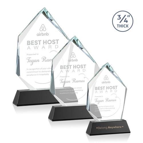 Celebrate pinnacle achievements with the Boone on Helton Black Peaks Crystal Trophy, a symbol of excellence and recognition. Expertly crafted from 3/4" thick Starfire Crystal, this elegant award is designed with deep, intricate bevels that play with light, creating a captivating display of brilliance and clarity. Resting on one of eight choices of tall, tapered colored bases, this customizable trophy not only commemorates success but also serves as a stunning centerpiece. Whether for corporate accolades or personal milestones, the option for a second position etch and colorfill ensures that each Boone on Helton trophy is as unique as the accomplishment it honors.
