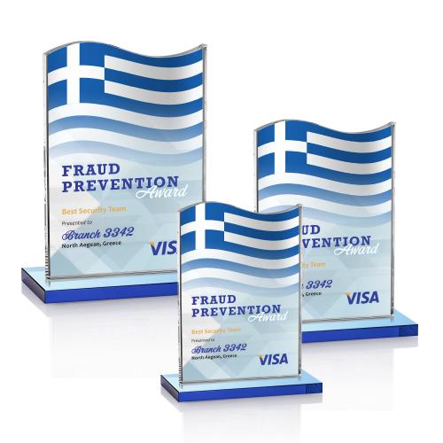 Elevate the recognition of exemplary accomplishment with the Dobbs Full Color Sky Blue Unique Crystal Trophy. This elegant award, crafted from the finest crystal, boasts a distinctive shape with a gracefully curved top that mimics the flow of a waving flag, symbolizing unity and triumph. Choose either a pristine clear or a vibrant blue crystal base to complement the personalized full-color VividPrint that brings your congratulatory message to life. The Dobbs trophy is perfect for making a lasting impression, whether it's to honor best-in-class performances, celebrate team achievements, or mark memorable milestones. Its eye-catching design and customizable features ensure that it's not just an award, but a cherished keepsake.