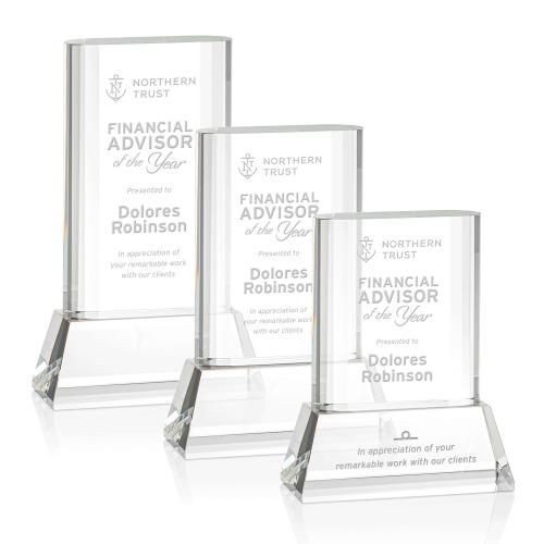 Elevate the moment of achievement with the Downey on Base Clear Rectangle Crystal Trophy, a truly sophisticated piece for commemorating life's significant milestones. Expertly crafted from the purest optical crystal, this elegant rectangular award is defined by its faceted stepped and curved sides, which catch the light to create a sparkling frame for your personalized message of excellence. Resting on a sleek, tapered crystal base, this trophy offers an air of distinction and grandeur, suited for any deserving individual. Whether for recognizing professional accomplishments or personal triumphs, this crystal clear symbol of success is sure to make a profound statement of appreciation and recognition.