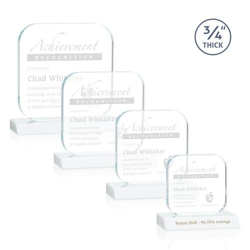 Celebrate innovative excellence with the Fagan Square / Cube Crystal Trophy. This Starfire Crystal accolade, reminiscent of a sleek mobile app icon with its rounded square silhouette, is a tangible symbol of commendation for standout developers, project managers, or design gurus. Sitting atop a striking white crystal base with a front mitered design, it offers the ideal canvas for your personalized message of recognition or achievement. Its substantial 3/4" thickness not only ensures a weighty and luxurious feel but also amplifies the brilliance of the crystal. Optional second position etching provides an additional customization level to further distinguish this prestigious award. Whether for an app launch celebration or team success, the Fagan Square / Cube Crystal Trophy is an exquisite gesture of acknowledgment for those who shape the digital world.