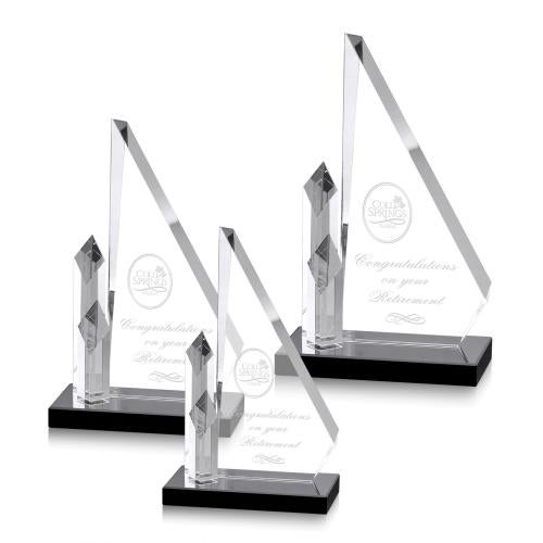 Celebrate stellar achievements with the Hanna Diamond Crystal Trophy, a magnificent symbol of recognition that stands out in any trophy case. Crafted from premium Optical Crystal, this award boasts captivating depth, thanks to its deep, intricate bevels and the stunning diamond-shaped pillars that anchor its design. Each trophy is carved into a distinctive diamond silhouette, evoking not only the timeless elegance of gemstones but also the clarity and brilliance that befit the highest of honors. Whether it's for corporate accolades, academic acknowledgements, or personal milestones, this unique award is ready to be personalized with your message of congratulations, making it the perfect centerpiece for any celebration of excellence.