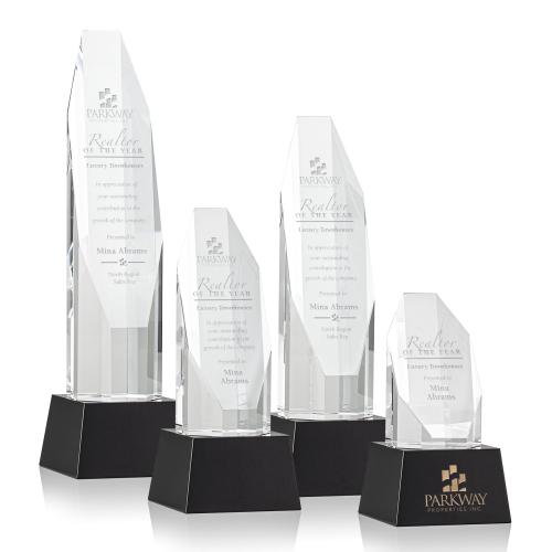Celebrate achievement with timeless elegance-the Cunningham on Base Black Polygon Crystal Trophy is a symbol of prestige and accomplishment. This striking award, crafted from premium-quality crystal, boasts a multifaceted obelisk form ascending to a diamond-shaped tableau that expertly catches and reflects light, creating a dazzling display to honor excellence. The sleek octagonal face provides the perfect canvas for personalized engraving to commemorate any special occasion or milestone. Resting upon a sophisticated ebony optical crystal base, this trophy offers an additional area for custom messages or logos. Optional second position etch and colorfill add a touch of distinction to this already exemplary piece. Perfect for corporate recognition, academic honors, or personal milestones, this trophy is designed to make a lasting impression.