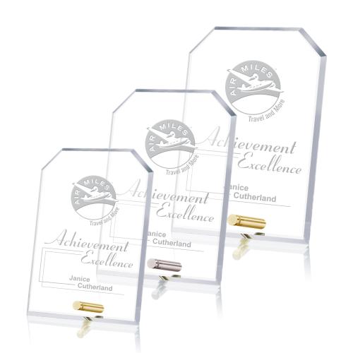 Celebrate excellence and commemorate achievements with the Manning Clipped Rectangle Crystal Trophy from Trophy.com. Merging the sleekness of contemporary design with the timeless elegance of Starfire Crystal, this trophy is a testament to success. Whether adorned with a chrome or gold pin, each trophy shimmers with a distinction that's sure to impress. Available in three sizes to suit any occasion and six unique shapes for personal preference, the crystal rectangle design provides a perfect canvas for customized engraving. Ideal for corporate awards, academic honors, or personal milestones, this trophy is an unadorned masterpiece waiting to be personalized with your message of congratulations and appreciation.