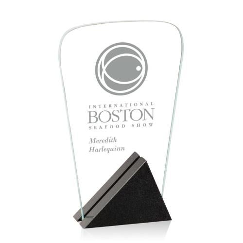 Elevate the moment of recognition with the McGovern Peaks Crystal Trophy, a masterpiece mingling elegance and durability. Crafted from premium starfire crystal with a 3/8" thickness, this award boasts curved edges, a subtly arched top, and frosted accents that glint with a soft, refined light. Perfectly counterbalanced by rich, black granite supports, its aesthetic is one of sophistication and strength, offering generous space for customization. Whether to celebrate a corporate milestone, a personal achievement, or a competitive victory, this trophy is the epitome of appreciation, ensuring the recipient's name and accomplishment are eternally etched in excellence. Please note, while the product image shows an example personalization, all items are delivered blank, ready for your unique touch.