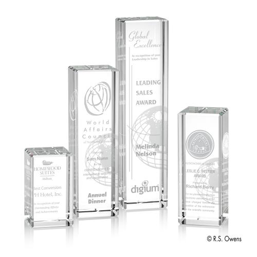 Honor remarkable achievements with the resplendent Global Achievement Towers Crystal Trophy, a series of awards that embody excellence. Expertly crafted from flawless optical crystal, these impressive towers of clarity and brilliance stand as a testament to success. Each tower features a detailed, deep-etched artistic rendering of the world on its reverse, signifying global recognition and the recipient's impact. Available in various sizes to suit different achievements, these awards begin as blank canvases, awaiting your custom inscriptions and personalized logos to truly distinguish the honorees. The standard depiction of the globe adds a universal touch to these already prestigious pieces, making them the epitome of global recognition. Whether for corporate accolades, educational triumphs, or personal milestones, these crystal towers convey a message of unwavering distinction.