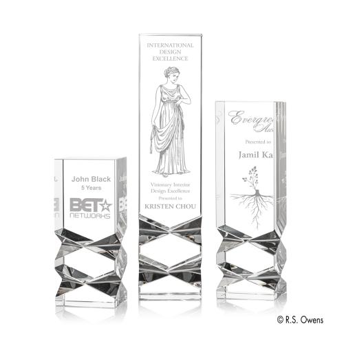 Celebrate achievements and milestones with the Murillo Towers Crystal Trophy, a symbol of elegance and distinction. Crafted from premium optical crystal, this award boasts a series of intricately faceted geometric cuts that culminate in a striking tower shape, designed to catch and reflect the light with a breathtaking sparkle. Flame polishing enhances its clarity and brilliance, ensuring that it stands out in any setting. Whether honoring outstanding performance, commemorating years of service, or presenting a token of appreciation, this crystal trophy is the epitome of sophistication, providing a blank canvas for personalized engravings that make each accolade truly unique. Let the Murillo Towers Crystal Trophy turn recognition into a lasting memory of excellence.