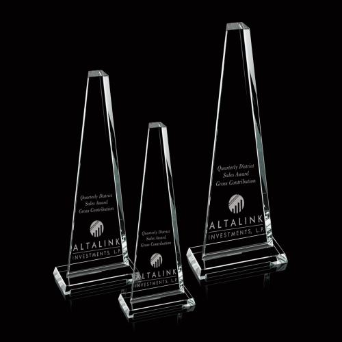 Celebrate success and outstanding achievements with the Driscoll Starfire Towers Crystal Trophy, a symbol of excellence and prestigious recognition. This exquisite award features sleek, tapered towers crafted from the finest Starfire crystal, designed to catch and reflect light, adding a radiant sparkle to any celebration. The symmetric bevels along the back elegantly frame your personalized message or bespoke artwork, making it the perfect canvas for hierarchically centered designs. Available in three stately sizes-12", 15", and a classic size suited to any display or desk-this timeless piece is an ideal choice for corporate awards, milestone recognitions, and distinguished honors. Elevate your award ceremony with a touch of class that recipents will cherish for years to come.