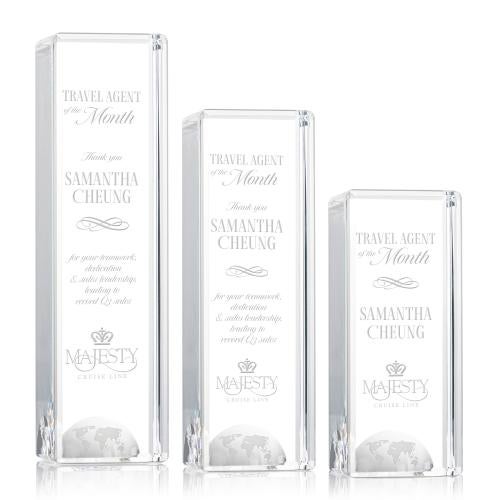 Honor global achievements and worldly success with the Waddell Globe Tower Crystal Trophy, a symbol of excellence and unity. Masterfully crafted from the finest optical crystal, this towering recognition piece features an intricately molded globe at its foundation, signifying an international reach and commitment to global excellence. The sleek, towering design offers ample space for personalized engraving, making it an ideal choice for celebrating distinguished accomplishments. Each trophy is delivered in a luxurious satin-lined presentation gift box, ensuring that the award is as impressive to present as it is to receive. Whether recognizing a corporate milestone, a diplomatic achievement, or a personal triumph, the Waddell Globe Tower Crystal Trophy stands as a testament to visionary success.