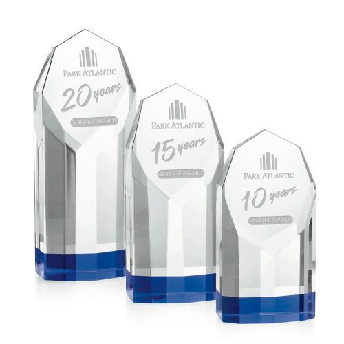 Honor achievements with the distinguished Dumas Polygon Crystal Trophy, a symbol of clarity and accomplishment. Each trophy features a harmonious blend of transparent and serene blue optical crystal, carved into a sturdy octagonal column that commands attention and respect. Its substantial weight and form are designed to resonate with the prestige of recognition. The trophy boasts a generous slanted face ideal for engraving personalized messages, logos, or artwork, ensuring that every accolade is as unique as the milestone it celebrates. Perfect for commemorating service anniversaries, performance awards, or any significant milestone, the Dumas Polygon Crystal Trophy is a tangible representation of appreciation and excellence.