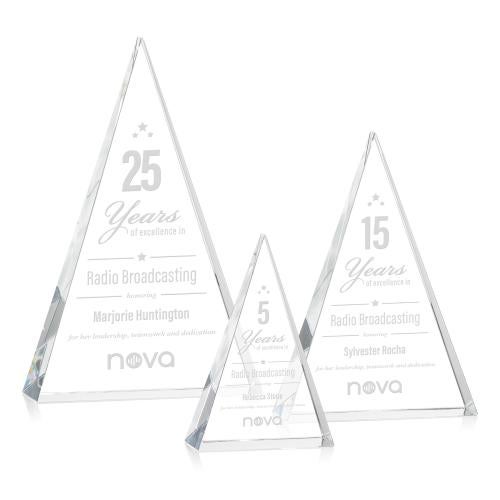 Celebrate the apex of achievement with the Soriano Pyramid Crystal Trophy, an emblem of success that is as timeless as it is elegant. Expertly crafted from the finest optical crystal, this stunning award is shaped into a classic pyramid design, symbolizing growth and endurance. Each facet captures and reflects light, illuminating the room and drawing eyes to its beauty. At its heart, a generous deep etch area awaits your personalized message, ensuring that your words of congratulations and appreciation resonate as strongly as its majestic form. The trophy is presented in a luxurious black satin-lined gift box, underscoring the importance of the milestones and memories it represents. Perfect for recognizing dedication, commemorating anniversaries, or honoring any remarkable accomplishment, the Soriano Pyramid Crystal Trophy stands as a tribute to the tireless journey towards excellence.