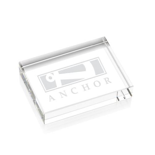 Gracing your desk or display shelf, the Arias Paperweight melds functionality with a touch of elegance. Crafted from the finest optical crystal, this pristine rectangle paperweight measures an ample 3" by 4", ideal for engraving a personalized message, brand logo, or meaningful design. Not simply a practical item to keep your papers in place, it also serves as a timeless memento that captures light and attention in any setting. The Arias Paperweight is a versatile choice for corporate gifting, commemorating special occasions, or adding a sophisticated flair to any office space. Please note, while the image shows an example of customization, each paperweight begins as a blank canvas, ready to be tailored to your unique specifications.
