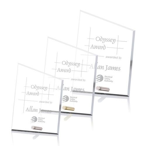 Discover the pinnacle of recognition with our Manning Peak Crystal Trophy, a harmonious blend of sophistication and sparkle that celebrates achievement in grand style. Each trophy is expertly crafted from premium Starfire Crystal, encapsulating brilliance and clarity within its elegant peaks design. Contemporary styling is accented by the choice of chrome or gold pins, adding a sublime touch that reflects success. Available in three sizes and six distinctive shapes, this crystal award offers versatility to suit any commendation or milestone. Tailor it to perfection with personalized engraving, creating an unforgettable token of excellence that will take center stage in any display. This trophy is the perfect canvas to inscribe your message of commendation, making every Manning Peak Crystal Trophy as unique as the achievement it honors.