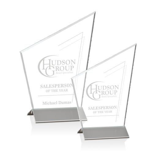 Elevate the recognition experience with our elegantly designed Sharpe Aluminum Peaks Crystal Trophy-an impeccable symbol of excellence and achievement. Constructed from premium quality starfire crystal and supported by a sophisticated pleated aluminum base, this trophy embodies a harmonious balance of strength and style. The Lynx variant, with its flared peak and boldly slanted top edge, creates a dynamic focal point for custom etchings, ensuring your personalized message of commendation resonates with clarity and impact. Standing at a classic 6 inches, with an optional 8 inches for those seeking a grander statement, this piece offers a generous etching area for customization. Perfect for celebrating milestones and honoring top performers, the Sharpe Aluminum Peaks Crystal Trophy captivates with its light-catching facets and timeless design, promising to be a cherished keepsake for years to come.