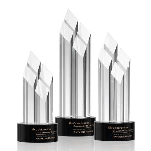 Presenting the distinguished Francisco Black Towers Crystal Trophy, a remarkable embodiment of prestige and elegance designed to honor excellence. Crafted with the utmost precision, this trophy features a harmonious blend of optical clear crystal and rich optical black crystal, culminating in four resplendent diamond-shaped towers that ascend with grace. Its timeless silhouette and sparkling facets capture and reflect light, creating a mesmerizing display of brilliance. Ideal for recognizing significant achievements or celebrating important milestones, each Francisco Black Towers Crystal Trophy starts as a blank canvas, awaiting your personalized inscription to make it a truly unique and memorable award.