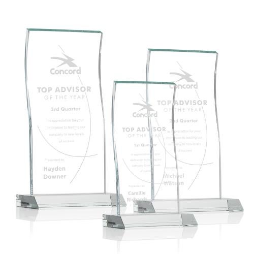 Honor extraordinary achievements with the McClure Clear Rectangle Crystal Trophy, a symbol of excellence and recognition. This gracefully tall, half-inch thick Starfire Crystal Tower boasts clean lines and a subtle, elegant curve near the top, enhancing its stunning clarity and reflective quality. Perfectly suited for any prestigious event, the trophy comes in three distinct sizes to suit your awarding needs. Each piece rests on an eye-catching colored crystal base, available in a choice of eight striking hues to complement your branding or event color scheme. Made of premium crystal for a long-lasting impression, this award is a brilliant choice for celebrating top performers, milestones, and memorable successes. Please note that while the product image may show example personalization, all items are delivered blank, ready to be customized with your specific message of commendation.