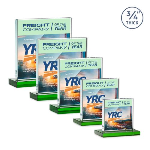 Celebrate achievements and milestones with the Landers Full Color Green Square Crystal Trophy â a sleek and contemporary symbol of excellence. Crafted from premium 0.75â thick Starfire Crystal, this eye-catching award boasts a flawless cube design that radiates brilliance from every angle. Choose from eight vibrant base colors to personalize this trophy to your specific occasion or brand identity. Perfect for corporate recognition or to commemorate an outstanding accomplishment, each trophy is a blank canvas ready to be customized with your message or logo, ensuring your honorees feel genuinely valued. This modern and elegant crystal award is destined to be the centerpiece of any display.