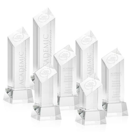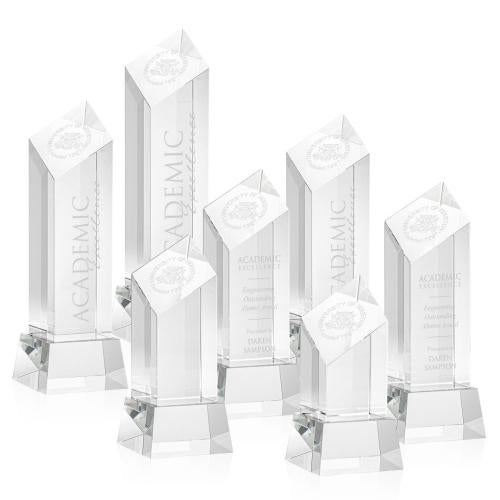 Elevate recognition to an art form with the Knight on Base Clear Towers Crystal Trophy, a testament to achievement and excellence. This majestic award is crafted from the finest optical crystal, featuring a stunning diamond tower design that rises elegantly from its optical crystal base. The slanted top adds a dynamic touch to the tower's pristine clarity, offering exceptional space for personalization. Custom etch your message of accolade or logo with precision, with an optional second position etch for extra detail. Perfect for corporate awards, academic honors, and prestigious events, this crystal trophy embodies the pinnacle of appreciation, ready to honor those who stand tall in their achievements.