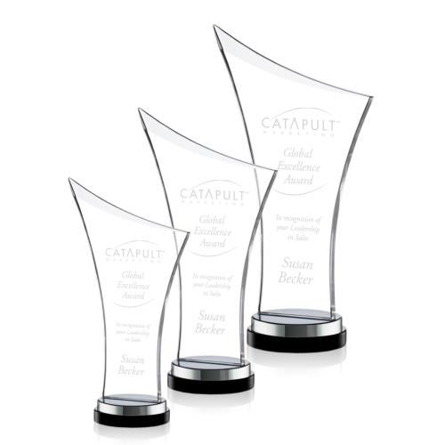 Stand out in recognition with the Casillas Starfire Peaks Crystal Trophy, an embodiment of elegance and achievement. Crafted from pristine clear crystal, its unique free-form peak design is accentuated by a broad beveled top, drawing the eye upwards toward the pinnacle of success. This exquisite award sits proudly atop a double-stacked black crystal base, providing a sturdy foundation and a striking contrast that enhances the luminosity of the crystal. Ideal for personalized engraving, this trophy is designed to start as a blank canvas, ready to commemorate exceptional accomplishments with a touch of sophistication. Whether for corporate recognition or a personal milestone, the Casillas Starfire Peaks Crystal Trophy is a dazzling symbol of excellence.
