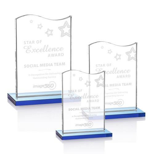 Elevate the celebratory atmosphere of any award ceremony with the Dobbs Sky Blue Unique Crystal Trophy, a stunning testament to excellence and unity. This premium crystal accolade stands out with its distinct curved top and sleek design, resembling a waving flag - a symbol of achievement and solidarity. Its remarkable craftsmanship is evident in the hand-etched details that beautifully catch the light, creating a breathtaking display. Set upon a sky blue base that complements its clear, starfire crystal elegance, this trophy is perfect for engraving personalized messages or logos, starting as a pristine blank canvas ready to be customized. Whether it's for corporate recognition, team achievements, or individual brilliance, this trophy will be a cherished keepsake for the truly deserving.