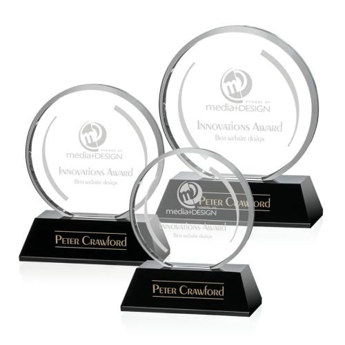 Celebrate achievement and commemorate outstanding performance with our McKinney Circle Crystal Trophy, a prestigious symbol of success and excellence. This elegant award, crafted from the finest optical crystal, boasts a contemporary circular design that stands proudly on a thick, robust black base. The pristine clarity of the crystal beautifully captures and refracts light, creating a magnificent display from any angle. Perfect for personalized engraving, the ample surface area allows for the recipient's name and accolades to shine brilliantly. Whether recognizing a top performer, a milestone anniversary, or a significant contribution, this trophy will serve as a lasting emblem of recognition and appreciation.