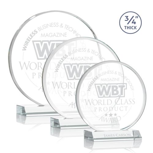 Celebrate excellence with the Juarez Clear Circle Crystal Trophy, a symbol of achievement that stands out with its pristine elegance. Crafted from premium quality crystal, this sophisticated award boasts a 3/4" thick Starfire Crystal circle that exudes clarity and brilliance. The award is beautifully complemented by a sleek, clear mitered base that enhances the trophy's luminosity and stability. With an optional second position etch available, personalize this timeless piece to honor top performers, commemorate milestones, or recognize exceptional contributions. Whether for corporate recognition or personal achievement, the Juarez Clear Circle Crystal Trophy is designed to be a cherished keepsake for any recipient.