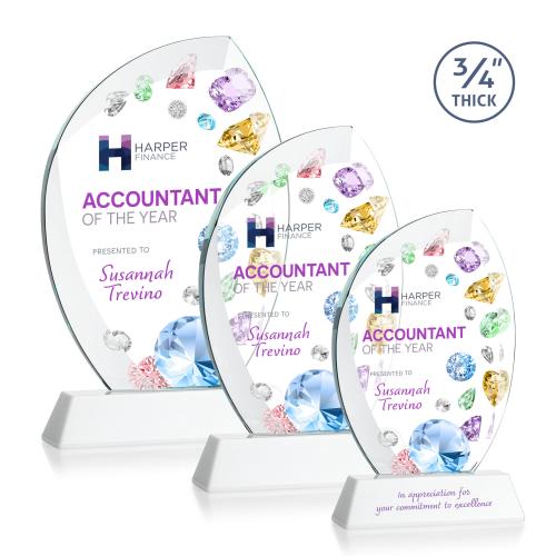 Ignite the flames of achievement with the Oakes Full Color on Helton Fagan Flame Crystal Trophy, a resplendent testament to excellence and dedication. Crafted from thick 3/4" Starfire Crystal, this trophy is precision-cut into a graceful flame shape, its sweeping bevels capturing and refracting light to create a dazzling display. Resting upon a sleek, tapered Optic Crystal base available in eight distinct colors, this award offers a vibrant stage for your personalized message of recognition. The flame design not only symbolizes passion and perseverance but also serves as a beacon of inspiration for any recipient. Each trophy can feature a second position imprint to further customize this radiant accolade, ensuring that each honoree feels truly celebrated for their unique contributions.