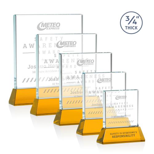 Celebrate milestones and commend outstanding achievements with the Landers on Helton Amber Square / Cube Crystal Trophy. Expertly crafted from 0.75" thick premium Starfire Crystal, this elegant award boasts a pristine square pane set atop a statuesque, tapered Starfire base available in a selection of eight vibrant colors to suit any corporate theme. The crystal's clarity and substantial weight are a testament to its quality, offering a generous surface for personalized engraving to honor individual or team accomplishments. Perfect for acknowledgments ranging from career anniversaries to high-level accolades, this trophy embodies the intersection of sophistication and recognition, ensuring that each recipient feels genuinely appreciated and valued.