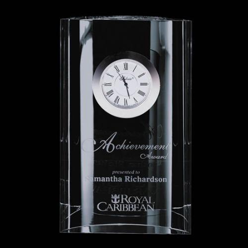 The Woodard Clock is an exquisite piece of craftsmanship, perfect for honoring notable achievements or serving as a distinguished gift. Made from extra thick optical crystal, this freestanding mantel clock boasts a stunning tower design that adds a touch of elegance to any space. Its pristine clarity and sophisticated aesthetic make it ideal for personalization, allowing you to add a unique touch for special employees or esteemed visitors. Whether celebrating corporate milestones or commemorating personal successes, the Woodard Clock is both a functional timepiece and a timeless symbol of recognition.