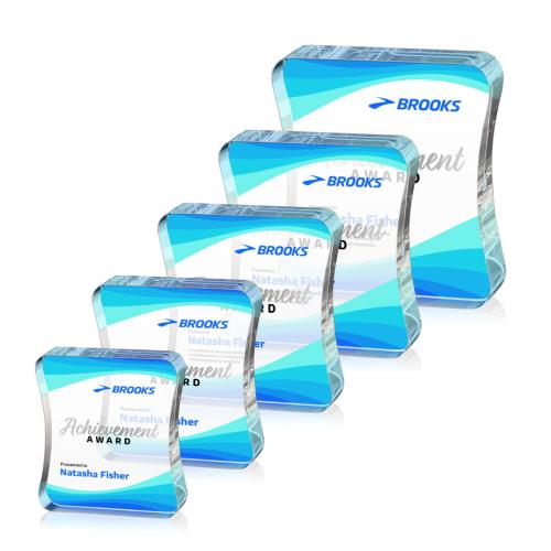 Celebrate exceptional achievements with the Elliott Full Color Rectangle Crystal Trophy. This elegant award features a beautifully contoured, waisted rectangular design crafted from high-quality crystal, providing a generous imprinting area to showcase personalized messages or company logos. Its sleek and modern silhouette is perfect for honoring star performers or commemorating significant milestones. Whether celebrating individual success or corporate excellence, this trophy captures attention with its exquisite clarity and vibrant full-color personalization options. Ideal for creating a lasting impression, it's a distinguished choice for any awards ceremony.