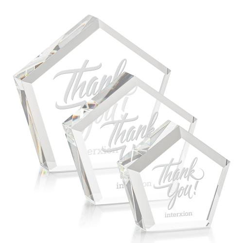 The Costa Paperweight is a stunning symbol of appreciation and excellence that makes an ideal desktop décor or functional paperweight. Exquisitely crafted from premium Optical Crystal, its pentagonal shape is enhanced by a sophisticated faceted border, catching the light and drawing the eye. The substantial nature of crystal lends both weight and elegance to this versatile piece, perfect for corporate recognition or as a personal gift. With the option to stand or lie flat, it serves as a daily reminder of achievement and thanks. The Costa Paperweight arrives unadorned, allowing for custom personalization to make each award genuinely unique and cherished for years to come. Add a touch of brilliance to any office space with this timeless piece.
