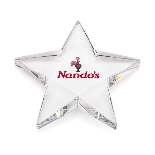 Elevate your recognition game with the Steiner Star Full Color Paperweight, a symbol of excellence that perfectly balances form and function. Masterfully crafted from premium optical crystal, this stunning paperweight boasts a classic star shape designed to capture and refract light, infusing any workspace with a touch of brilliance. The pristine surface offers ample space for vivid customizations, while the flat imprint area on the bottom ensures your personalized message or logo shines through with clarity. Each elegant piece arrives nestled in a satin-lined presentation gift box, making it an ideal gift for esteemed colleagues, standout employees, or as a cherished keepsake for special milestones. This is more than just an office accessory; it's a statement of appreciation that will be treasured for years to come.