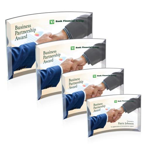 Celebrate achievements with the illustrious Carranza Full Color Clear Crescent Crystal Trophy, a testament to success and partnership. This exquisite crystal award boasts a unique crescent shape, allowing it to stand out in any display. Infused with a kaleidoscope of 16 million colors and baked to ensure both vibrancy and durability, it captures the essence of recognition in every radiant facet. Available in four distinct sizes to match any occasion, and with the potential for various other shapes, this trophy can be tailored to your specific celebratory needs. Ideal for corporate commendations, team accomplishments, or personal milestones, this unadorned crystal canvas awaits your custom message, ensuring that every award is as unique as the achievement it honors.