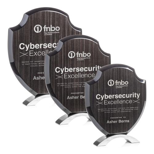 Introducing the Belgrave Slatewood Silver Trophy-an exceptional choice for recognizing outstanding achievement. This stunning award artfully combines a modern aesthetic with a sophisticated slatewood-inspired design. Crafted in an elegant shield shape, it features smooth, curved shoulders and high-gloss beveled edges that ensure your personalized message takes center stage. The sleek metallic base is available in either gold or silver accents, offering a versatile fit for any ceremony. Ideal for honoring professionals in cybersecurity, IT, law enforcement, corporate security, and more, this trophy symbolizes protection, vigilance, and trust. Celebrate excellence with a piece that speaks volumes.
