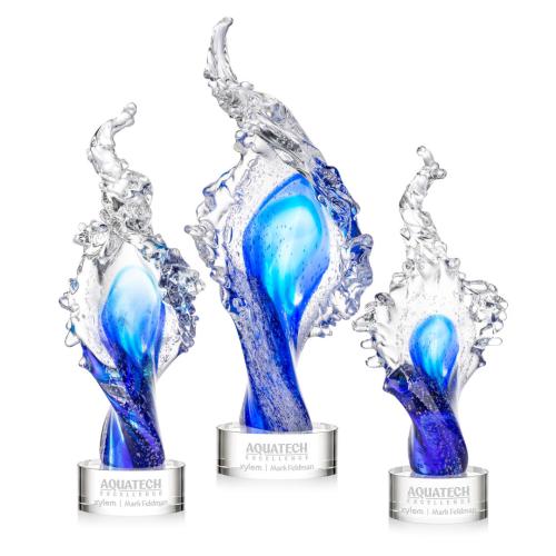 Celebrate remarkable achievements with the Breaker on Round Base Clear Unique Glass Trophy, a masterpiece that embodies momentum and innovation. Crafted from high-quality glass, this stunning award features swirling layers of crystal-clear and vibrant blue glass, capturing the dynamic essence of a wave at its peak. Each piece is an individual work of art, perfect for honoring leadership, exceptional sales performance, innovation, or long service. With its distinctive design and powerful visual impact, the Breaker Award creates a lasting impression, making it an ideal choice for meaningful recognition moments. Personalization options are available to add a special touch to this unforgettable symbol of excellence.