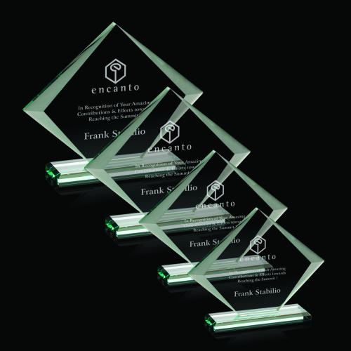 Celebrate excellence and commemorate outstanding achievements with the Latham Jade Diamond Glass Trophy. This exquisite award, crafted from premium jade glass, boasts beveled edges that gracefully taper to accentuate its diamond shape, lending an air of sophistication to any accolade. The trophy is elegantly poised on a matching beveled base, which enhances its stability and visual appeal. Each trophy comes packaged in a luxurious black satin-lined presentation gift box, making it a ready-to-give treasure for honorees. The Latham Jade Diamond Glass Trophy offers ample space for personalization, ensuring that each recipient feels genuinely appreciated with a unique, enduring symbol of success. Whether for corporate recognition, academic honors, or personal milestones, this dignified glass trophy is a timeless testament to achievement and a distinguished addition to any display.