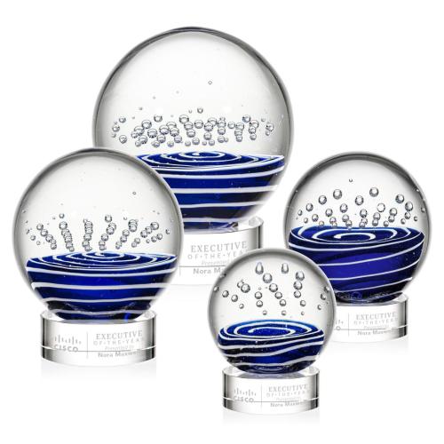 Discover a truly remarkable way to commemorate achievement with the Darby on Lockwood Base Clear Globe Glass Trophy. This exquisite piece is a hand-blown masterpiece, ensuring each globe has unique characteristics that make it special. Crafted from high-quality glass, the trophy features a globe design that symbolizes global excellence and ambition. It rests elegantly on a sturdy base that offers ample space for personalizing with a logo or recipient's name, making it an ideal choice for corporate awards or personal milestones. Celebrate uniqueness and success with this stunning art glass trophy, where no two pieces are exactly alike.