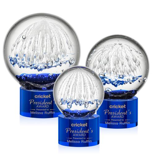 Similar to Rudolph on Round Base Blue Globe Glass Trophy:
