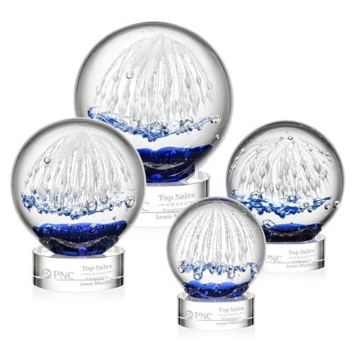 Introducing the exquisite Rudolph on Lockwood Base Clear Globe Glass Trophy, a masterpiece that embodies elegance and exceptional craftsmanship. This hand-blown art glass piece stands out with its unique, one-of-a-kind design, ensuring that no two awards are the same. The globe-shaped trophy is meticulously crafted from premium glass, with a stunning visual display that captivates and inspires. It rests on a sleek, optical base that offers ample space for personalized engravings, making it perfect for any special occasion or recognition event. With its captivating brilliance and distinctiveness, this trophy is an ideal choice for honoring outstanding achievements.