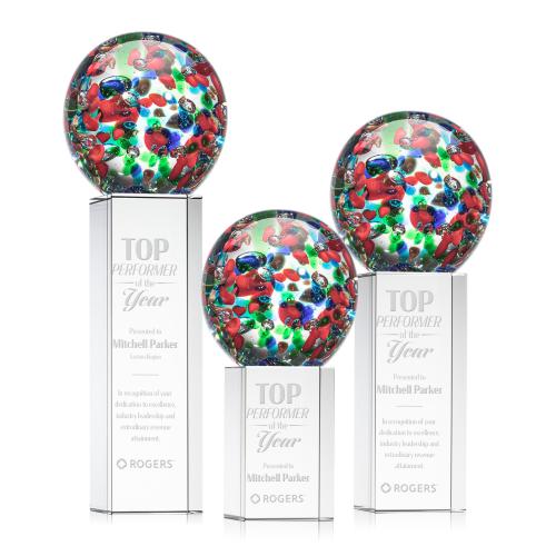 Celebrate excellence with the Knapp Globe on Yoder Base Glass Trophy, an exquisite testament to achievement that blends artistic flair with timeless elegance. This stunning trophy showcases a hand-blown glass globe adorned with a swirl of abstract, vibrant colors that captivate the eye and inspire the spirit. No two pieces are alike, making each trophy a unique work of art. The globe is gracefully mounted atop a tall, optical-quality Dakota base, exuding a sense of grandeur and sophistication. Perfect for recognizing top performers or commemorating special occasions, this glass award is a striking and memorable tribute to success. Personalization options allow you to add a personal touch, making it an exceptional choice for any prestigious event.