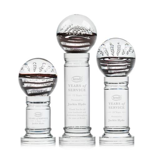 The Cummins on Crystal Pedestal Base Clear Globe Glass Trophy, also known as the Serenity Award, is an exquisite art glass creation that embodies elegance and distinction. Each piece is individually hand-crafted by skilled artisans, ensuring its unique charm with flowing patterns and delicate, suspended bubbles that capture movement and depth. This trophy features a stunning globe design, artfully perched on a crystal pedestal base that offers a perfect spot for personalized engraving. Ideal for recognizing and honoring excellence with artistry, this one-of-a-kind award makes a memorable and sophisticated statement. Celebrating achievements has never been more graceful.